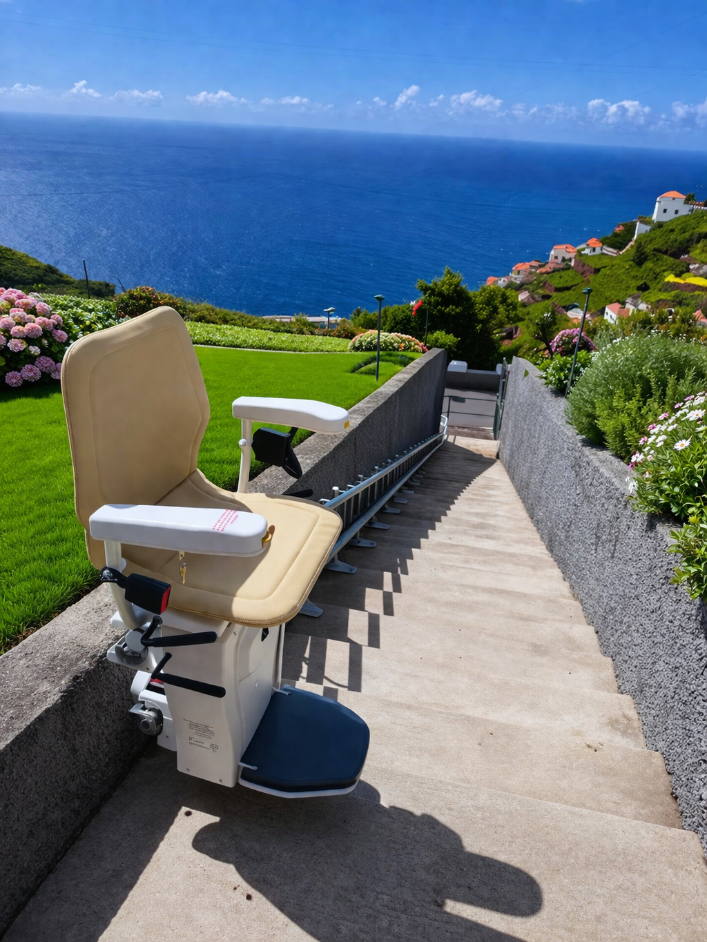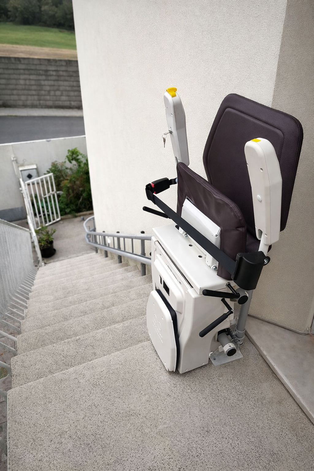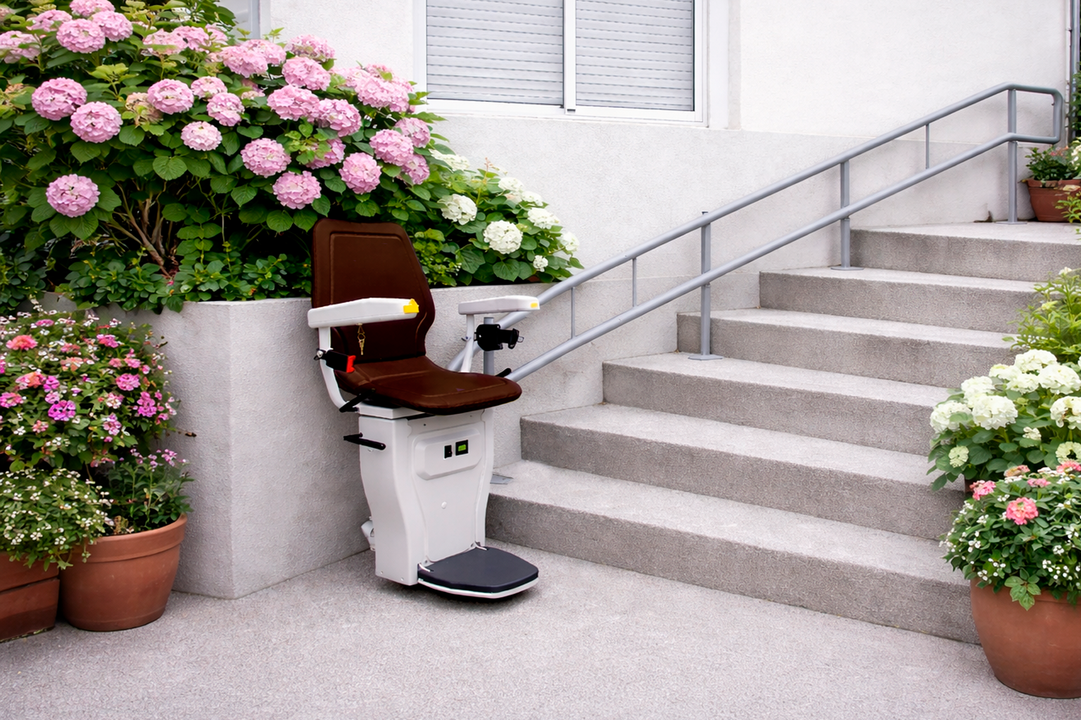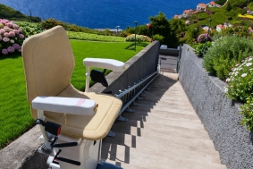 A Cadeira Elevador Infinity também pode ser instalada em ambientes externos, oferecendo uma solução completa de acessibilidade mesmo em áreas ao ar livre.